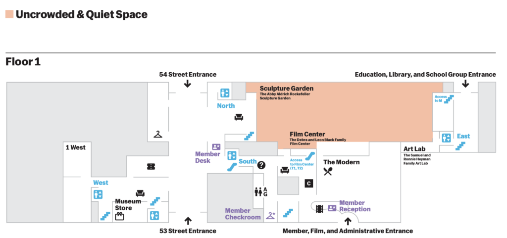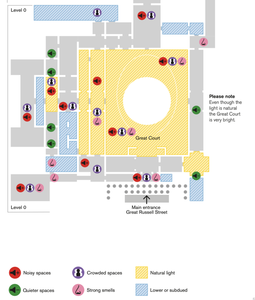 Sensory maps are used in museums such as The Museum of Modern Art (MoMA) in New York City (MoMA 2023) and The British Museum in London (The British Museum 2023) to help visitors identify sensory-friendly places in museums. They are visualizations of the spaces within these places that incorporate information about stimuli that can be perceived in certain areas and the intensities thereof.