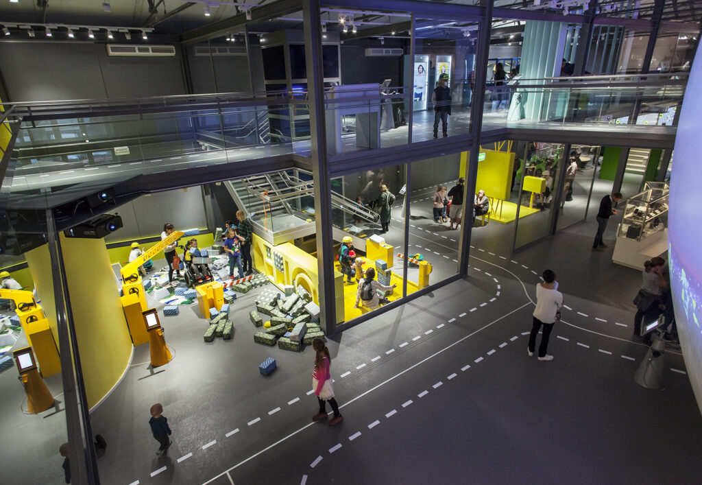 The National Museum of Science and Technology features an open-plan layout across four floors. Most exhibitions are interactive, encouraging guests to engage and experiment with them. The museum caters to both children and adults and includes a restaurant and a café. Due to the open-plan concept, sound levels can become very loud, as many exhibitions have audio output. The sounds from different exhibitions blend together, creating a constant loud background noise.