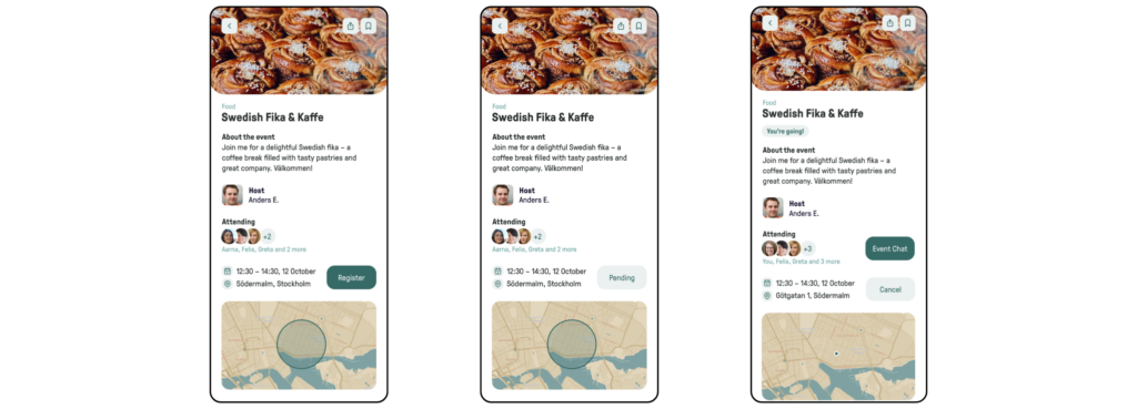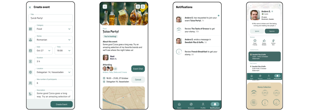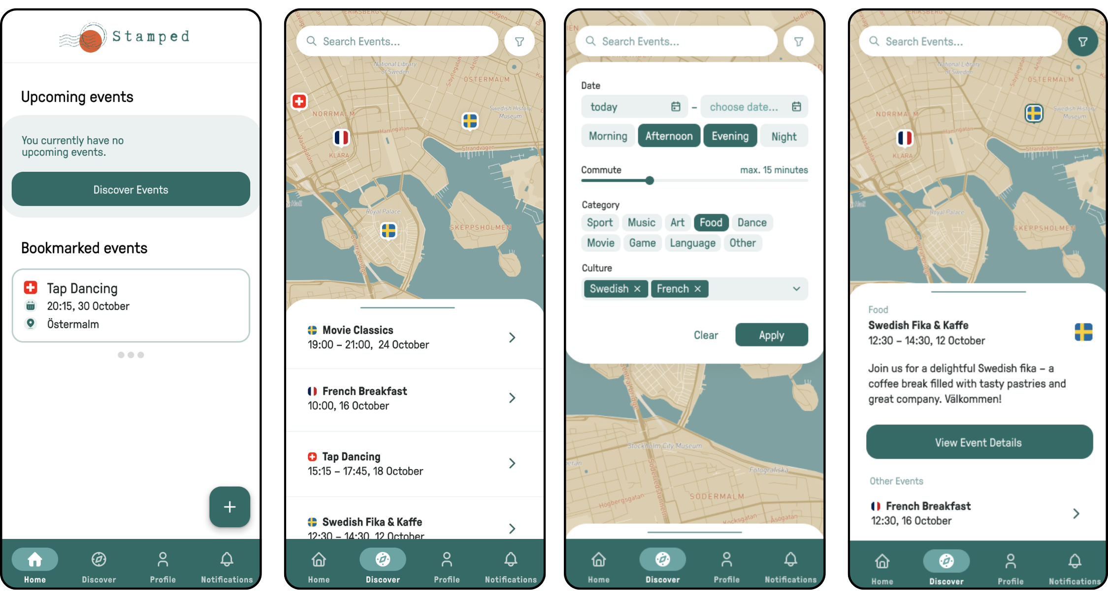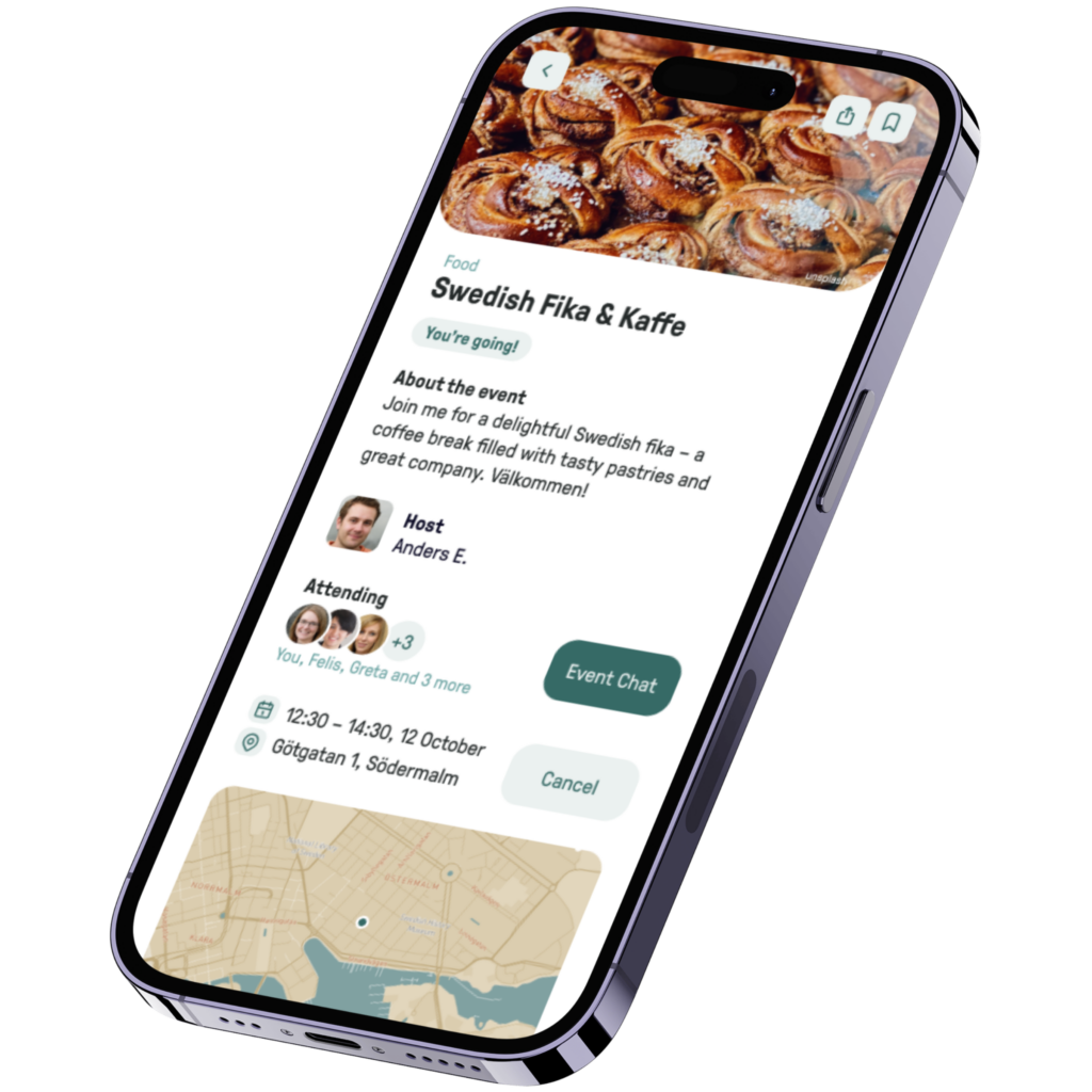 An app designed to foster connections between newcomers and locals in Stockholm through at-home events.
